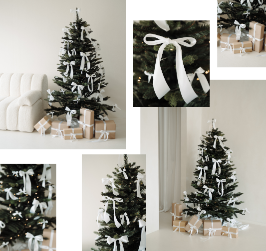 Für eure perfekten Weihnachtsshootings haben wir in passend minimalistischer Ästhetik einen 1,80m großen Weihnachtsbaum inkl. Lichterketten & Geschenken für euch aufgebaut!